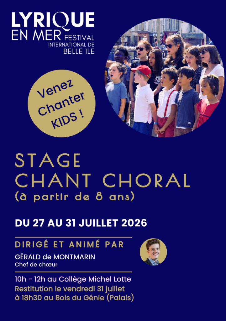 Depuis plusieurs années, Lyrique-en-mer propose des stages de chant choral aux enfants et aux adolescents, leur permettant de découvrir et de perfectionner cette discipline artistique. Chaque été, une semaine de stage est proposée à une vingtaine de jeunes participants.